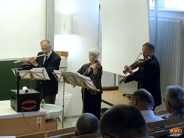Como sorpresa que no nos esperábamos  :o, antes y después del discurso de presentación un trio nos obsequio con un par de piezas de música clásica, supongo que por esos lares es algo habitual... ???