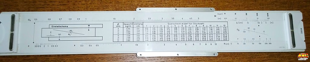 • JB: La hormigonera Nestler 0440 es una regla especial puede calcular en rotura (la única?). Poca información hay de ella y se encuentra aquí en ARC. Recientemente he encontrado alguna información en [link] He podido consultar las normas holandesas por las que se rige la regla y un librito que explica el método de rotura que se sigue en ellas. También he elaborado un papelito en el que muestro, por ejemplo, la relación de la regla con la "parábola de Madrid", el porqué del 35 rojo en la escala central, del coeficiente de seguridad 1,8 que se repite, la expresión algebraica de los parámetros de la regla y relación entre ellos, la revisión de los ejercicios del manual y la humorada de ver cómo se comporta la regla resolviendo 4 ejercicios del "Hormigón Armado, de J. Montoya" (adelanto que sorprendentemente bien). Sé que es un ámbito de interés muy específico, sólo para aquellos miembros de la Orden de los Caballeros de la Regla muy hormigoneros. Si hay interés, puedo compartir el papel, si se me indica cómo.