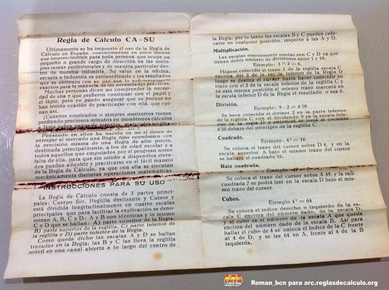 Hoy he encontrado una regla de cálculo "CA-SU" fabricada en Barcelona.