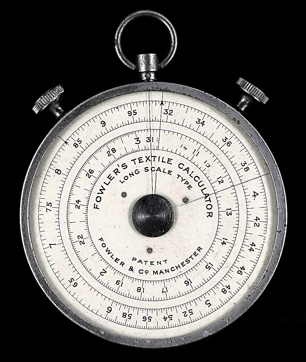 Estaba previsto para los técnicos de la industria textil, tiene dos particularidades: una sola escala y una tabla de conversión/características de "Weft, Looms, Reeds" (tramas, telares y peines , si no me equivoco).
