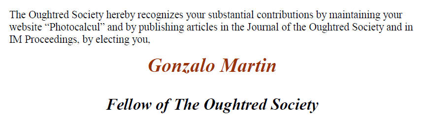 Gonzalo Martin: for maintaining his website "Photocalcul" and by contributing substantial publications in OS Journal and IM Proceedings,