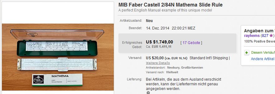 Este fin de semana terminó la que es el precio record (por lo que comentan en la ISRG) de subasta para una 2/84N, 1749 $!!: